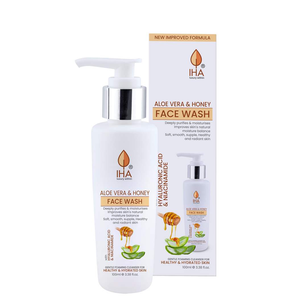 The Aloe Vera & Honey facewash is a gentle yet effective 100% soap free facewash that deeply cleanses skin of impurities and pollutants, whilst maintaining its natural moisture balance. Imbued with naturally hydrating coconut water, cucumber & gotukola extract, it quenches the thirst of dry, dehydrated and irritated skin and improves skin's natural moisture balance, leaving skin soft, smooth, supple, healthy and radiant without tightness.